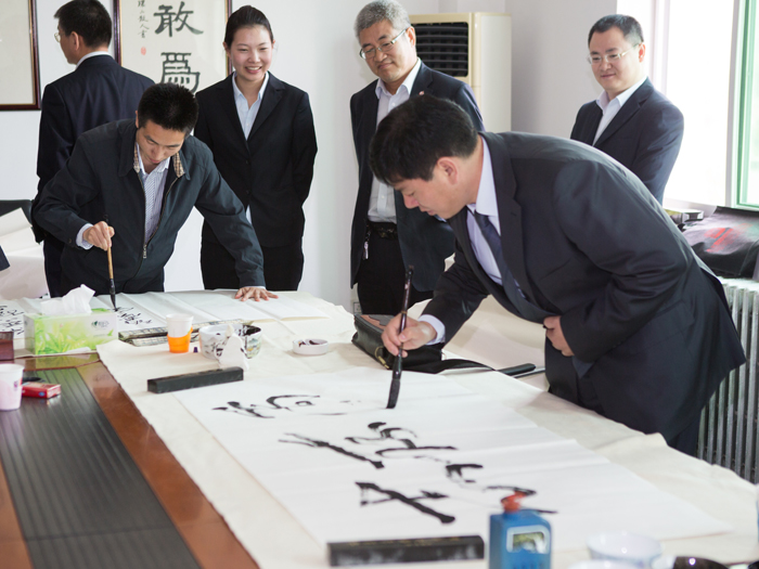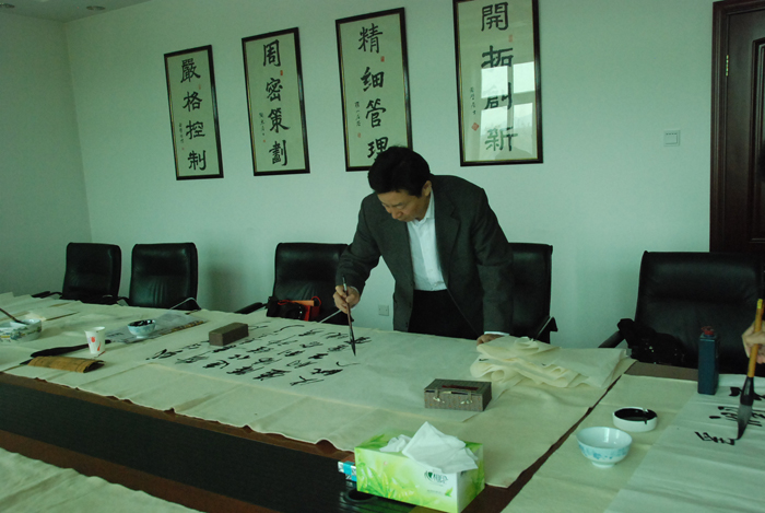 为弘扬传统文化,丰富员工业余生活,5月6日上午,乐鱼有限公司举办了首届书画艺术学习交流活动。本次活动邀请了中国书法家协会会员孟云飞博士、中国书法家协会理事张铜彦先生、中国书法家协会编辑出版委员会副主任王荣生教授、人民艺术家协会理事于瑛先生等国内知名书画大师,各位书画大师在活动现场进行了艺术创作表演,挥毫泼墨,交流技艺,为乐鱼有限公司留下了数十副墨宝,还对部分员工的书画作品进行了悉心指导。公司员工现场欣赏了书画大师的艺术创作,并聆听了有关书画艺术鉴赏知识的介绍,部分员工还在活动现场进行创作,听取书画大师的讲解示范和点评。