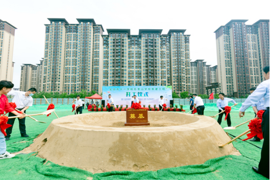 7月5日上午,由集团公司承建的北京市十一学校石景山学校新建工程开工仪式在项目现场热烈举行。石景山区委书记常卫,区委副书记、区长李新,区委常委、常务副区长齐春利,区委常委、宣传部部长李金克,区委常委、副区长周西松,副区长李先侠,北京市十一学校党委书记、校长田俊,党委副书记张之俊,项目建设、设计、监理等单位领导参加活动,集团公司党委书记、董事长陈先瑞出席仪式。