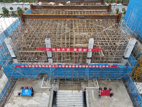 2021年10月9日,来自西南交通大学、中国建筑西南设计研究院、四川原理装配式建筑设计院等多家单位设计人员,齐聚乐鱼四川分公司承建的成都大江中学项目,与分公司总经理宋景友、副总经理张铁强等相关领导一起,共同见证了国内学校建设领域首例预制混凝土柱拼接连接吊装施工的顺利完成。